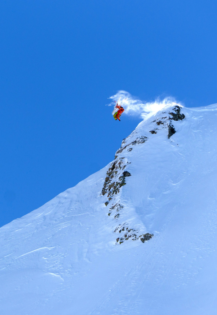 Одним из самых рискованных сегментов стали прыжки ski BASE, где горнолыжник разгоняется по снегу и прыгает со скалы высотой 500 метров, расправляя парашют и приземляясь аккуратно на ровное место под горой. Это, кстати, первенство в прыжках в истории русского спорта.