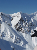 Одним из самых рискованных сегментов стали прыжки ski BASE, где горнолыжник разгоняется по снегу и прыгает со скалы высотой 500 метров, расправляя парашют и приземляясь аккуратно на ровное место под горой. Это, кстати, первенство в прыжках в истории русского спорта.