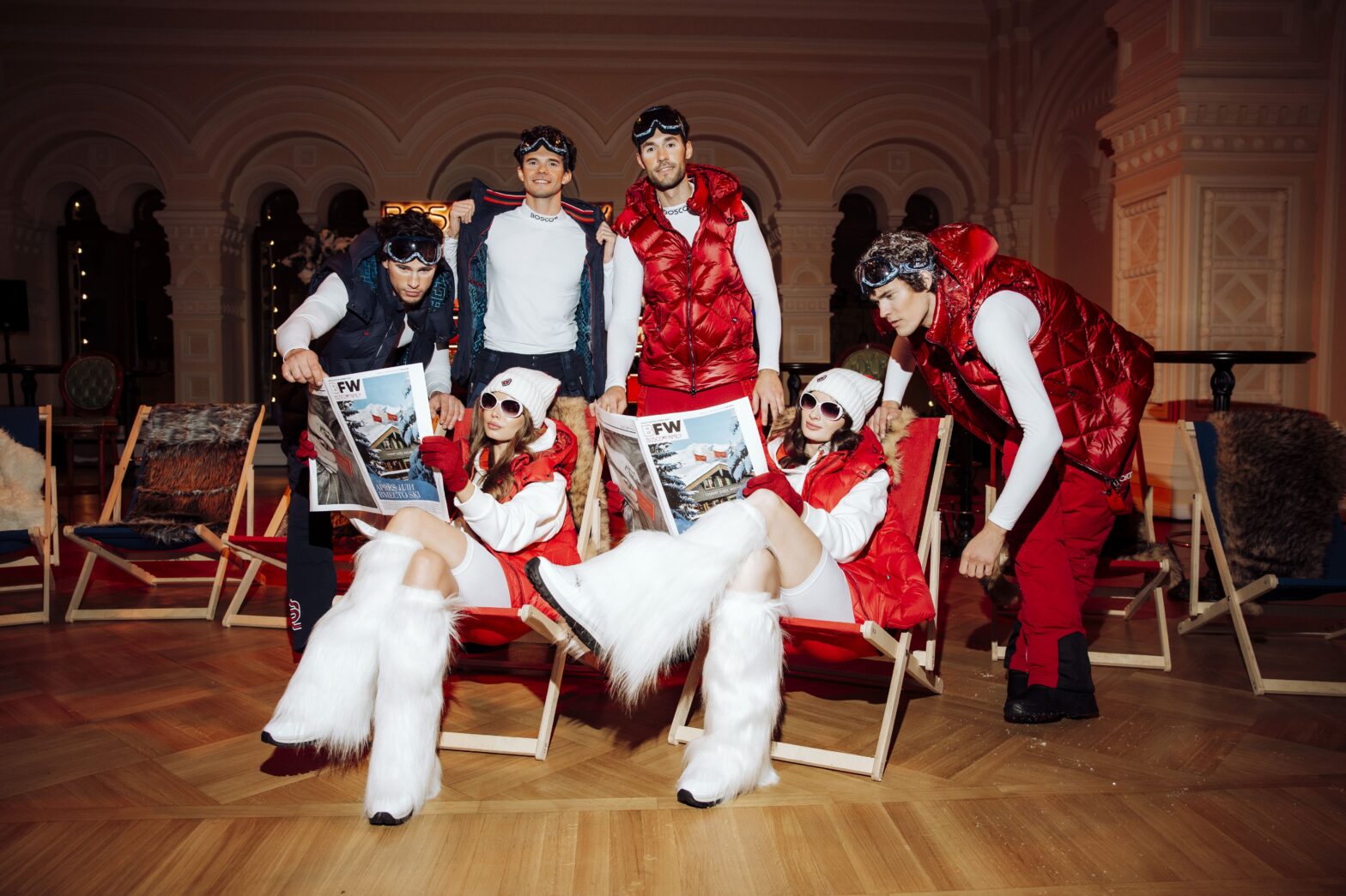 Друзья и клиенты BoscoFamily погрузились в атмосферу стильного горнолыжного курорта: Демонстрационный зал ГУМа стал уютным шале Chez Michel. Гости усаживались за длинные деревянные столы, а желающие могли сделать памятные фото в фотозоне в стилистике «я только что со склона».